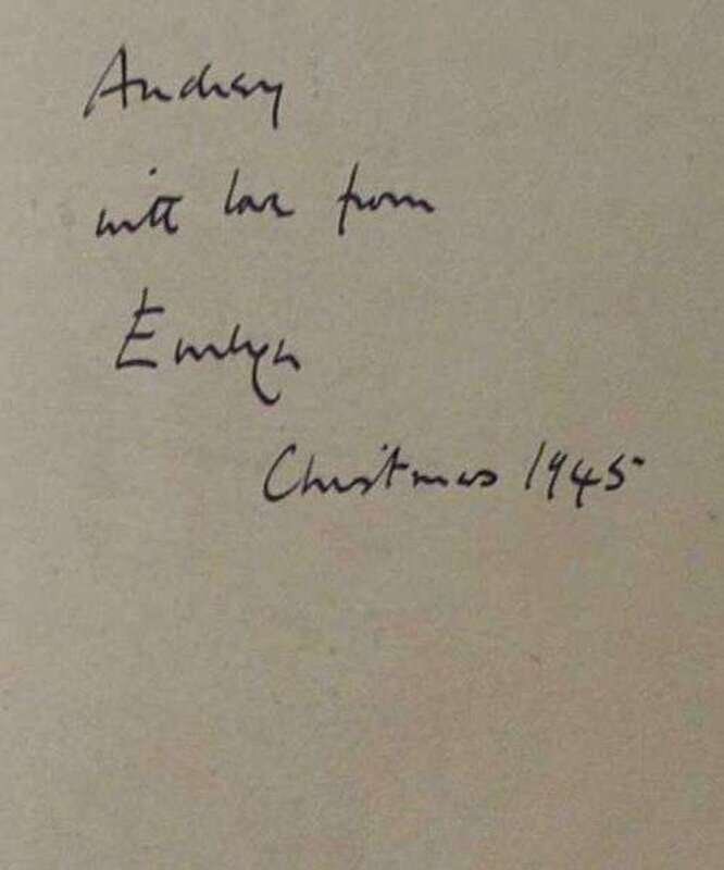 Inscribed & signed "Evelyn" by Evelyn Waugh to Audrey [Rubin?], Christmas, 1945.