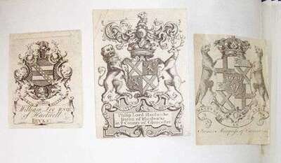 (Bookplates.) Album holding 180 bookplates - many 18th-century armorial bookplates - Oblong 4to, orig. polished tan calf; cover slightly warped.
