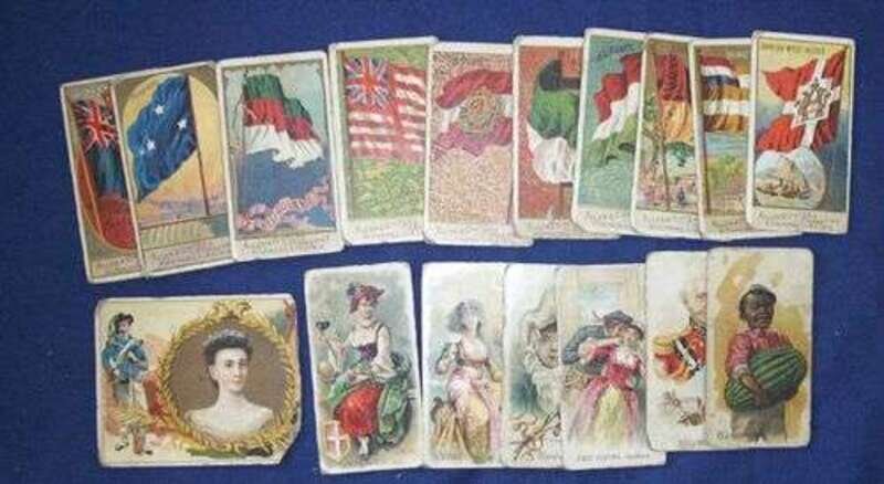 Cigarette Cards, ca. 1890 - Assorted - Includes soubrettes (29); American Indian Chiefs, Flags, Coins, Holidays, G-/VG - Approx. 65 cards.