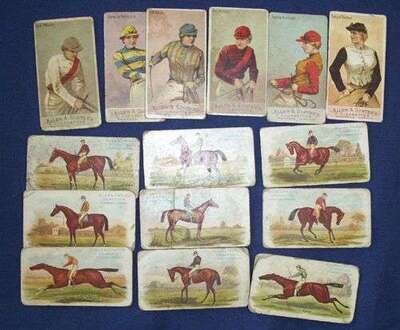 Cigarette Cards - Equestrian - Allen & Ginter's Racing Colors of the World, ca. 1890, 18 cards (G-/VG). * Allen & Ginter's The World's Racers, ca. 1890, 10 cards (G-/VG).