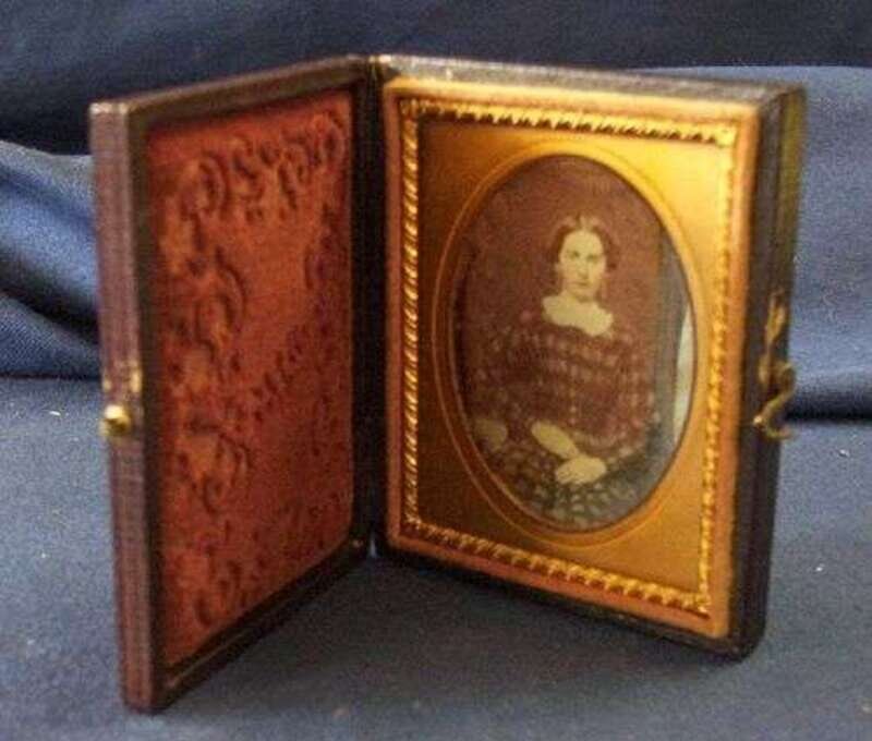 19th-Century American Photographs - Daguerreotypes - Portraits, 3 quarter plates (2 women, 1 man), 1 sixth plate (woman), in orig. leather (3) or thermoplastic cases, covers of 2 leather cases detached. Photos often tarnished. Ca. 1850.