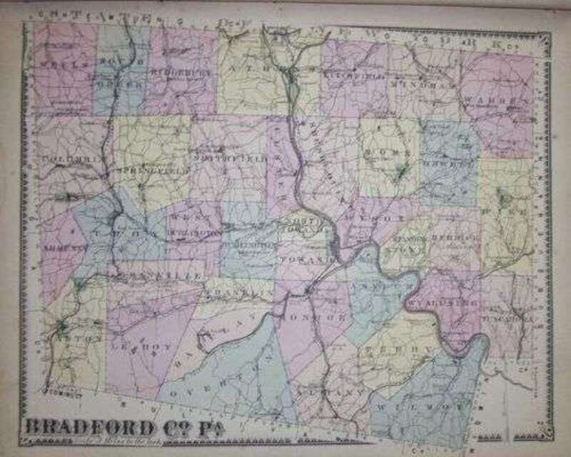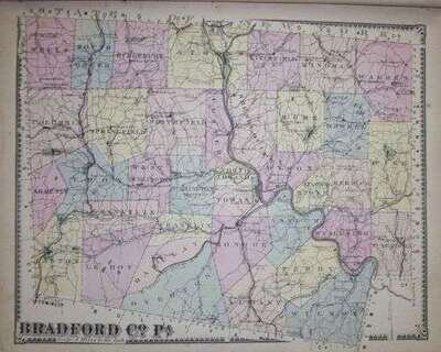 (Pennsylvania County Atlases): Beers, Frederick W. Atlas of Bradford County, Pennsylvania. New York: F.W. Beers, et al., 1869. Folio, modern cloth; worn & dust soiled, spine defective, covers detached, bdg. broken. 40 color maps. Lithographic views. Some internal dust soiling, browning & creasing, occasional chipping to fore-edge margins. Complete but rough copy. Le Gear 3012. * Beers, Daniel G. Atlas of Luzerne County, Pennsylvania. Philadelphia: A. Pomeroy & Co., 1873. Folio, modern cloth; endpapers moderately soiled. 71 color maps (incl. fold. maps). Minor internal dust soiling, occasional minor repairs to versos, top fore-edge of last leaf chipped, title-page slightly browned. But internally generally clean. Complete. Le Gear 3042.