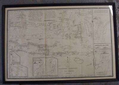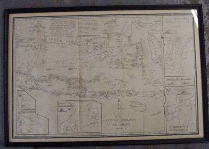 Lithographic Sea Chart. Horsburgh, James. "Eastern Passages to China, Sheet I: Java Sea," etc. Approx. 25 x 38 inches; 635 x 965 mm. Framed.