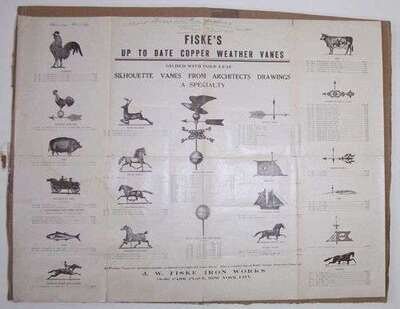 Printed Broadside. Weathervane Catalogue. "Fisher's Up to Date Copper Weather Vanes." New York, 1929. Illus. 18 x 24 1/2 inches. Occasional minor soiling.