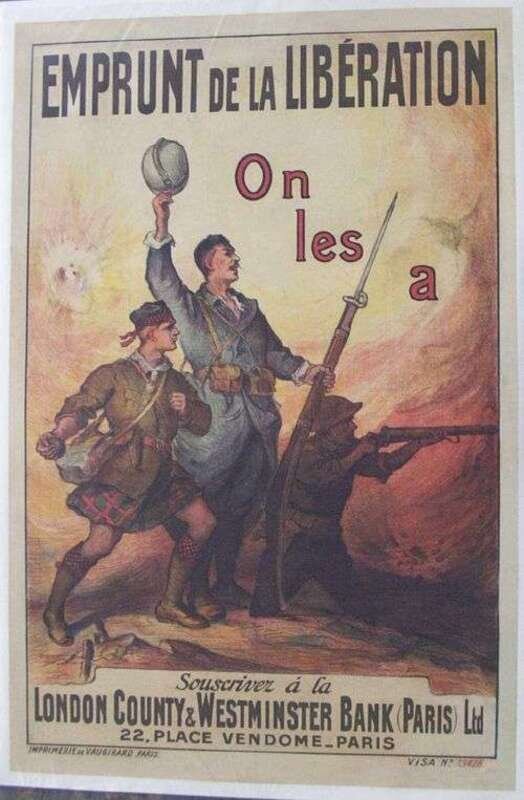 World War One Poster - French. Bouisset, Firmin. "Emprunt de la Liberation." Paris: Imprimere de Vanguard, n.d. [ca. 1916]. Color litho, 47 x 31 1/2 inches; 1193 x 800 mm. Condition A-; some light creasing.