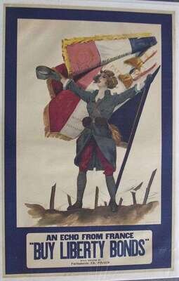World War One Poster - [American]. Crepaux, F.A. "An Echo From France." New York: H.G. Klotz & Co, 1918. Color litho, 46 x 30 inches; 1168 x 762 mm. Condition A-; some light creasing & minor staining along edges.