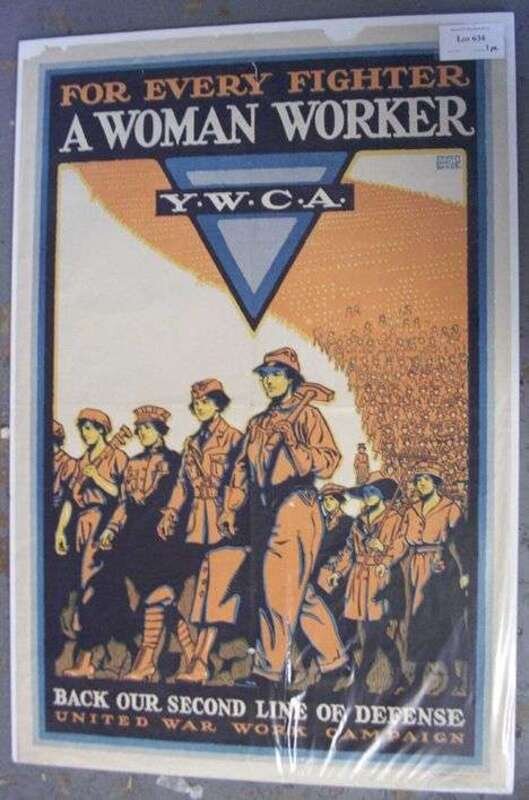 World War One Poster - American. Baker, Ernst Hamlin."For Every Fighter a Woman Worker." New York, ca. 1918. Color litho, 42 x 28 inches; 1066 x 711 mm. Condition B-; creased along folds, creasing & wrinkling along edges, some close tears.