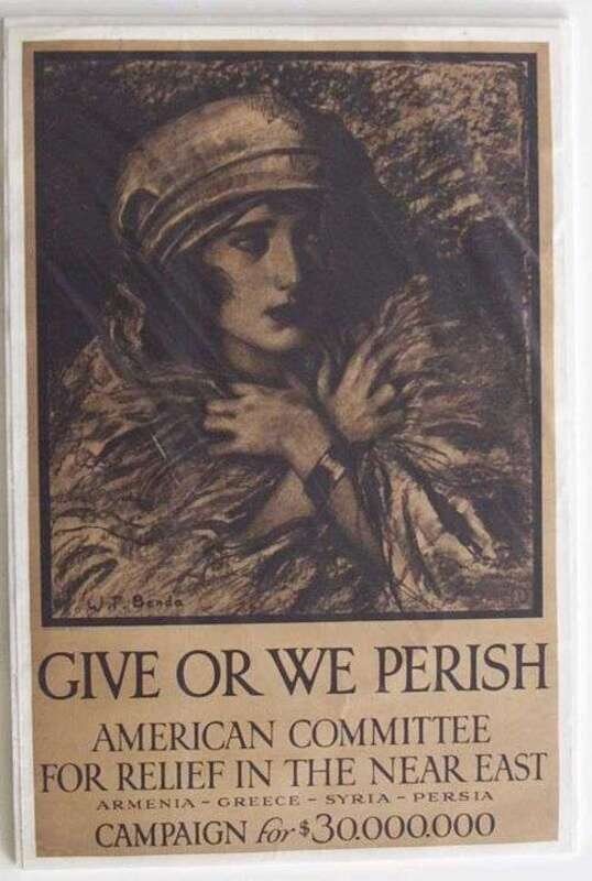 World War One Poster - American. Benda, W.T. "Give or We Perish." New York: Alco-Gravure, ca. 1918. Litho, 19 1/2 x 20 3/4 inches; 495 x 527 mm. Condition A-; some expert repairs to minor chipping along lower edges. Linen backed.