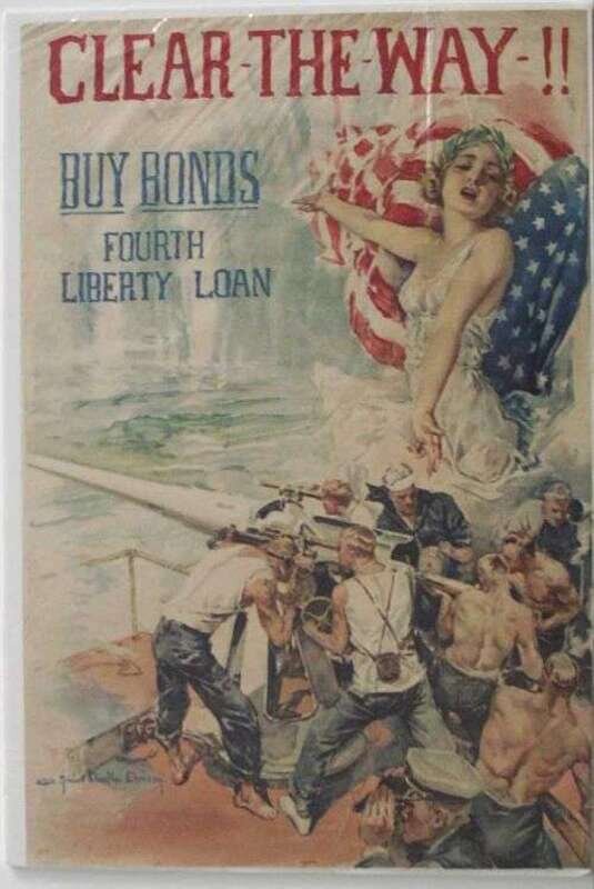 World War One Poster - American. Christy, Howard Chandler. "Clear the Way!" Boston: Forbes, ca. 1918. Color screen, 30 x 20 inches; 762 x 508mm. Condition A-; some small creases & tears along right margin.