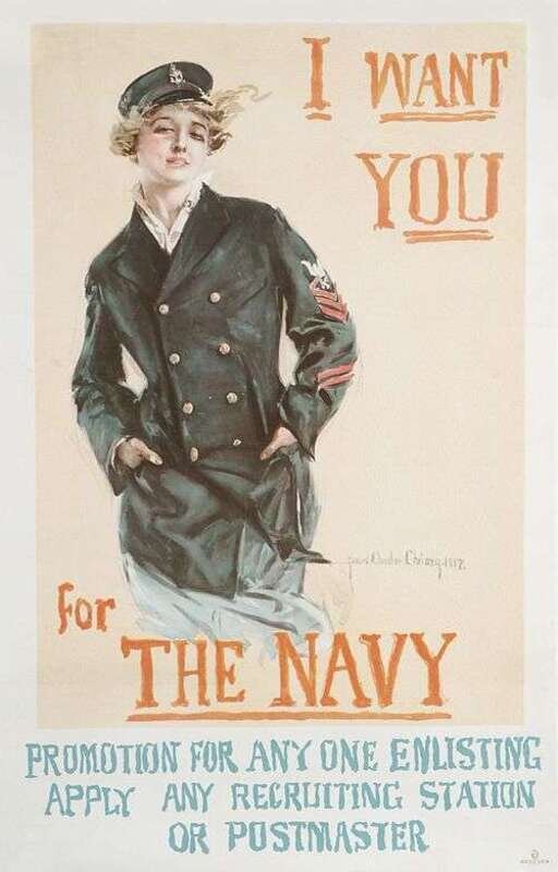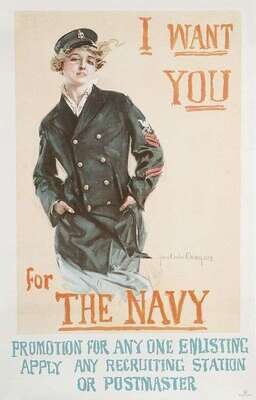 World War One Poster - American. Christy, Howard Chandler. "I Want You for the Navy." Boston: Forbes, 1917. Color screen, 40 x 25 1/2 inches; 1016 x 647 mm. Condition A-; some minor creasing. Linen-backed. Bright & clean.