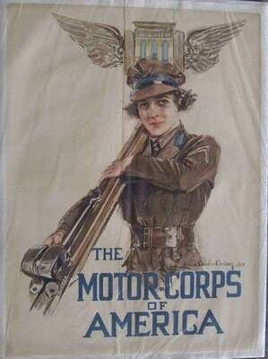 World War One Poster - American. Christy, Howard Chandler. "The Motor Corps of America." N.p., 1918. Color screen, 42 x 31 1/2 inches; 1066 x 800 mm. Condition A-; creased along folds, some light soiling along folds.