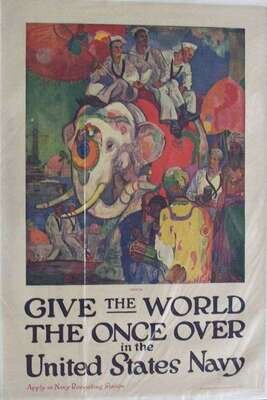 World War One Poster - American. Daugherty, James H. "Give the World the Once Over." New York: Navy Recruiting Bureau, ca. 1917. Color litho, 42 x 28 inches; 1066 x 711 mm. Condition A. Linen-backed.