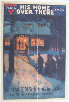 World War One Poster - American. Herter, Albert. "His Home Over There - YMCA, YWCA." N.p., 1918. Color litho & screen, 40 1/2 x 28 inches; 1016 x 711 mm. Condition A; very light creasing. Linen-backed.