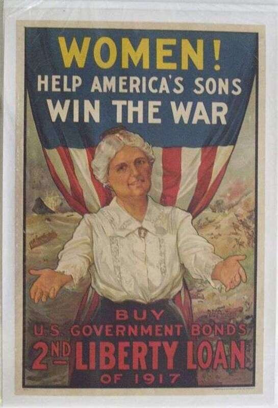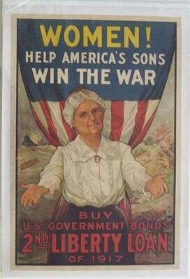 World War One Poster - American. Porteus, R.H. "Women! Help America's Sons Win the War." Chicago: Edwards & Deutsch, 1917. Color litho, 30 x 20 inches; 762 x 508 mm. Condition A-; some light creasing. Linen-backed.