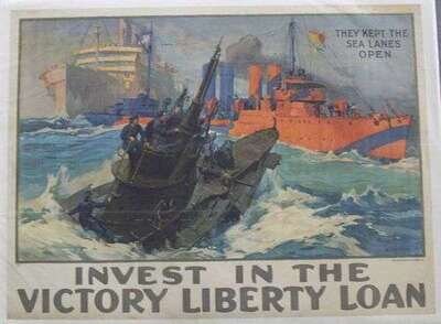 World War One Poster - American. Shafer, L.A. "They Kept the Sea Lanes Open." New York: The W.F. Powers Co., 1919. Color litho, 29 x 39 inches; 762 x 1016 mm. Condition B-; some repairs to edges. Linen-backed.