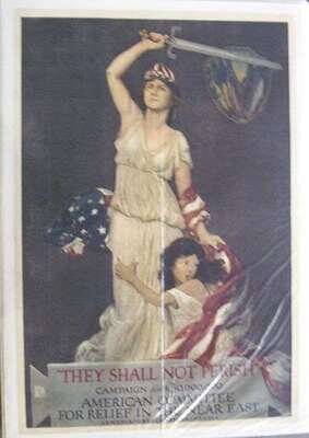 World War One Poster - American. Volk, D. "They Shall Not Perish... American Committee.. Near East." New York: American Lithograph Co., 1918. Color litho, 38 x 26 inches; 965 x 660 mm. Condition B+; some wrinkling & creasing along folds, minor repairs. Linen-backed.