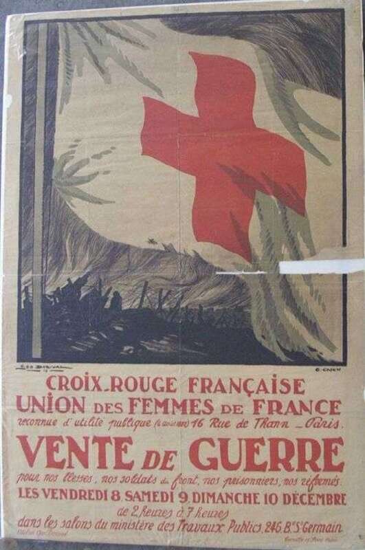 World War One Posters: Morgan, Wallace. "Feed a Fighter." Cincinnati & New York, (1918). Black & white screen, 28 1/2 x 21 inches; 724 x 533 mm. Condition C; chipped, tape repairs, soiling. * "Coming! Major Wallace Winchell." New York, [ca. 1917]. Color litho, 41 x 28 inches; 1041 x 711 mm. Condition B-; some wear, close tears, creasing. * Bracker, M. Leone. "Keep 'em Smiling!" N.p., 1918. Color screen, 41 1/2 x 28 inches; 1054 x 711 mm. Condition C; many tears. * "Oh Boy, That's the Girl!" New York, 1918. Color screen, 40 x 29 1/2 inches; 1016 x 749 mm. Condition C; creased, torn, cellotape repairs. * Dorival, Geo. "Croix Rouge Francais..." Paris, 1916. Color litho, 48 x 32 inches; 1219 x 812 mm. Condition C; creasing, chipping, tears.