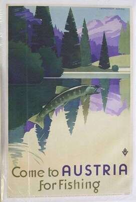 Travel Poster. Wunscheim. "Come to Austria for Fishing." Vienna, n.d. [ca. 1930]. Color screen, 36 3/4 x 24 3/4 inches; 933 x 628 mm. Condition A-; some minor creasing along edges. Linen-backed.