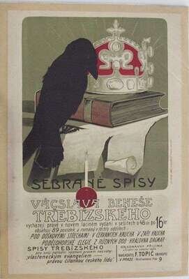 (Czech Poster.) Anon. "Sebrane Spisy Vacslava Benese." Prague, ca. 1905. Color litho, 32 1/2 x 21 3/4 inches; 825 x 552 mm. Condition B; some spotting, minor creasing.