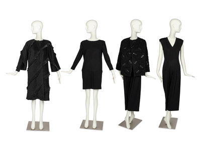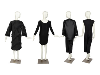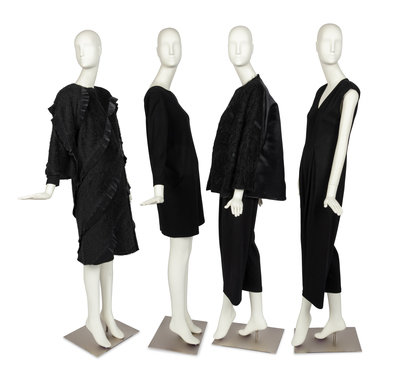 Four Geoffrey Beene Items: Two Coats, One Dress & One Jumpsuit, 1990s