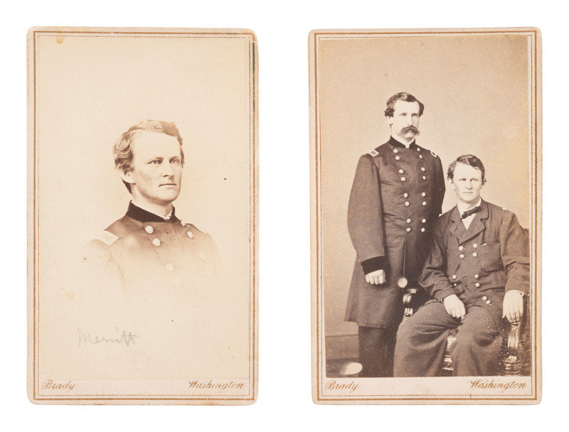 [CIVIL WAR - CAVALRY]. BRADY, Mathew (1822-1896), photographer. A group of 2 CDVs of General Wesley Merritt. Washington, DC.