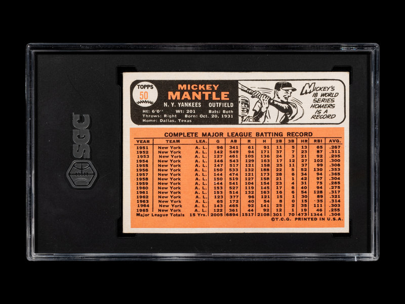 A 1966 Topps Mickey Mantle Baseball Card No. 50 (SGC 4.5 VG/EX+)