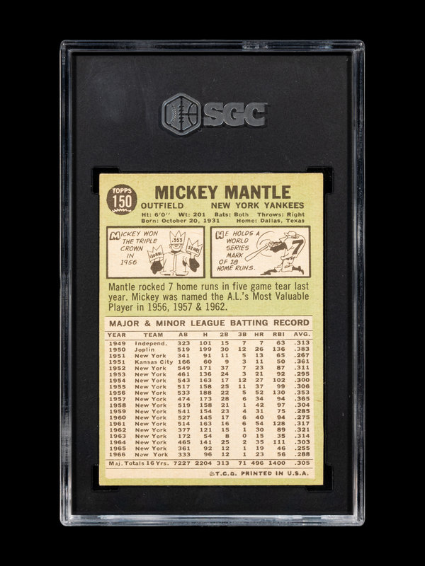 A 1967 Topps Mickey Mantle Baseball Card No. 150 (SGC 6 EX/NM)