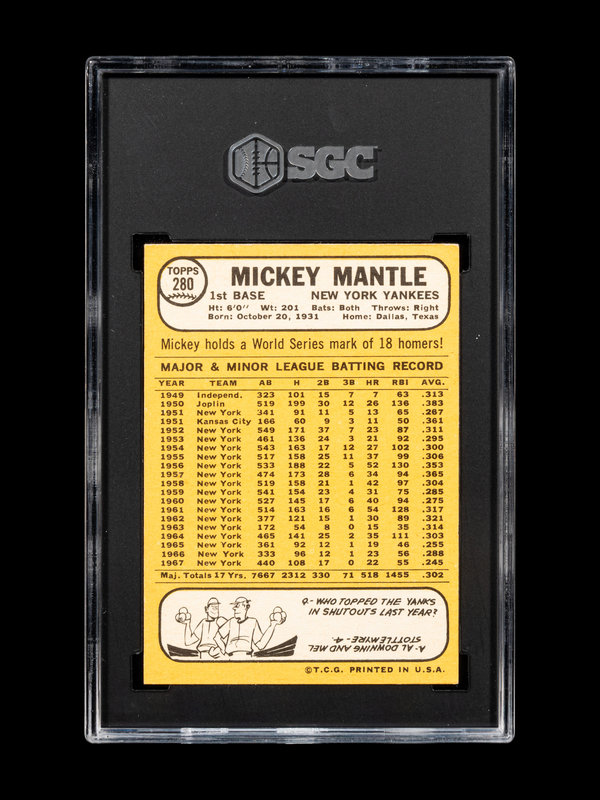 A 1968 Topps Mickey Mantle Baseball Card No. 280 (SGC 5.5 EX+)