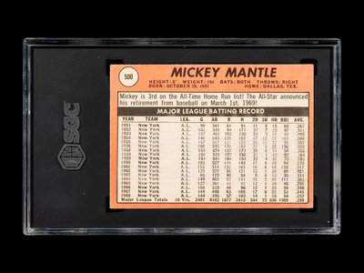 A 1969 Topps Mickey Mantle Baseball Card No. 500 (SGC 1)