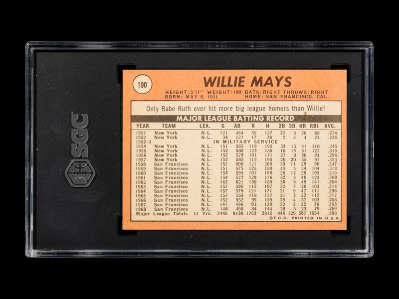 A 1969 Topps Willie Mays Baseball Card No. 190 (SGC 7 NEAR MINT)