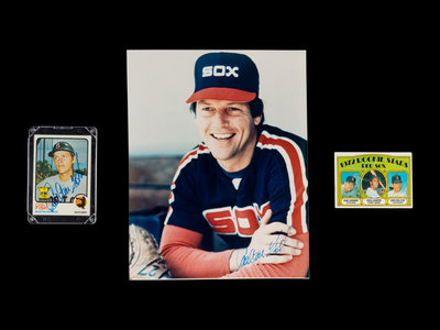 comprising a signed autograph photo, a 1972 Topps rookie card and a signed 1973 Topps baseball card.