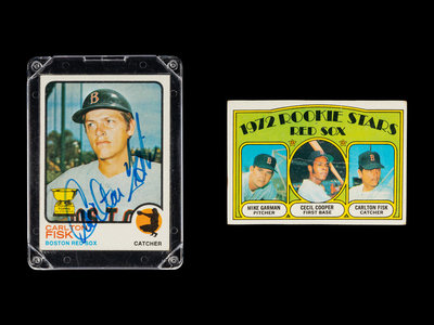 A Group of Carlton Fisk Items Including a Signed 1973 Topps Baseball Card,