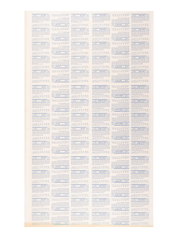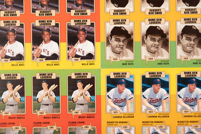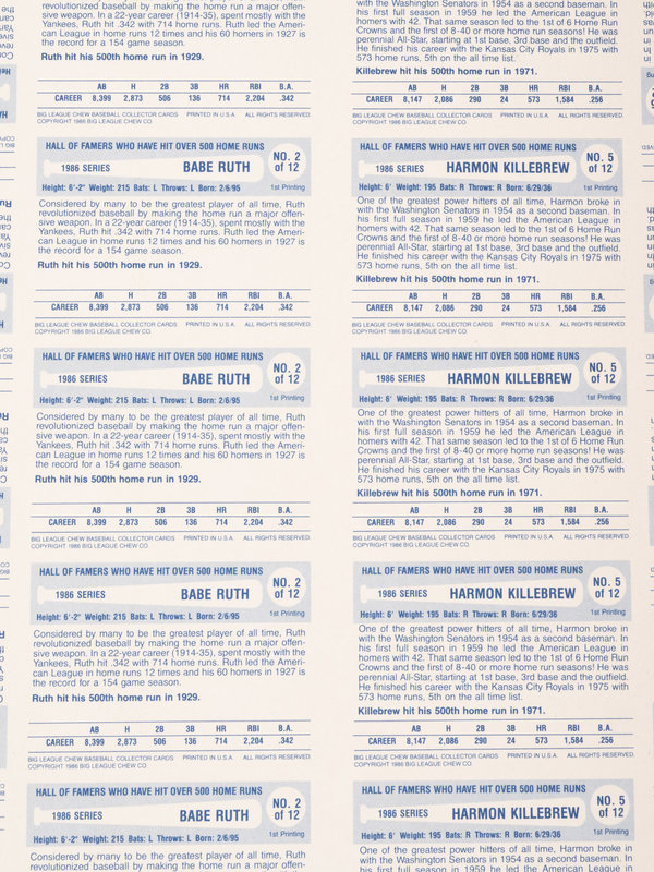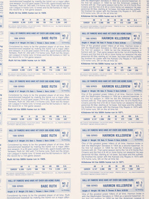 A Group of Five Uncut Sheets of 1980 Baseball Immortals and Home Run Legends Baseball Cards
