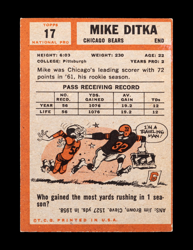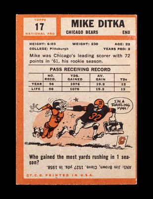 A 1962 Topps Mike Ditka Rookie Football Card No. 17