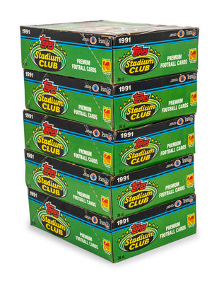 A Group of Five Unopened Boxes of 1991 Topps Stadium Club Football Cards (Possible Brett Favre Rookie)