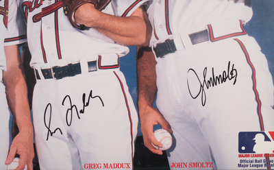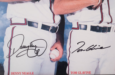 comprising Denny Neagle, John Smoltz, Greg Maddux and Tom Glavine all signed in black Sharpie.