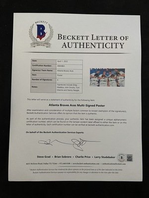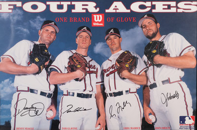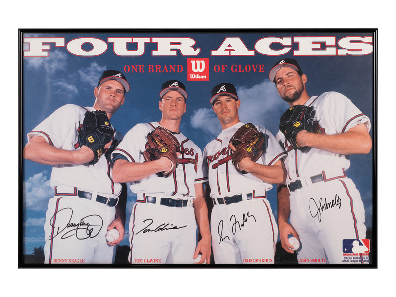 An Atlanta Braves Four Aces Wilson Sporting Goods Signed Autograph Poster Featuring Tom Glavine, Greg Maddux, John Smoltz and Denny Neagle (Beckett Authentication Services Letter),