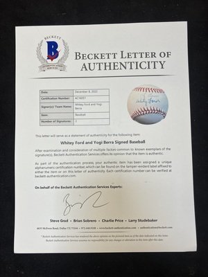 A Yogi Berra and Whitey Ford Dual Signed Autograph Baseball (Beckett Authentication Services Letter),