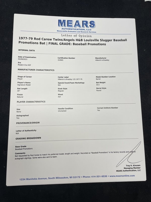 A Rod Carew Signed Autograph 1977-79 Baseball Promotions Louisville Slugger Bat (MEARS LOA),