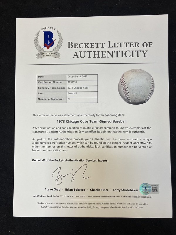 A Group of Chicago Cubs Hall of Fame Signed Autograph Baseballs and a 1973 Team Signed Baseball (Beckett Authentication Services Certified),