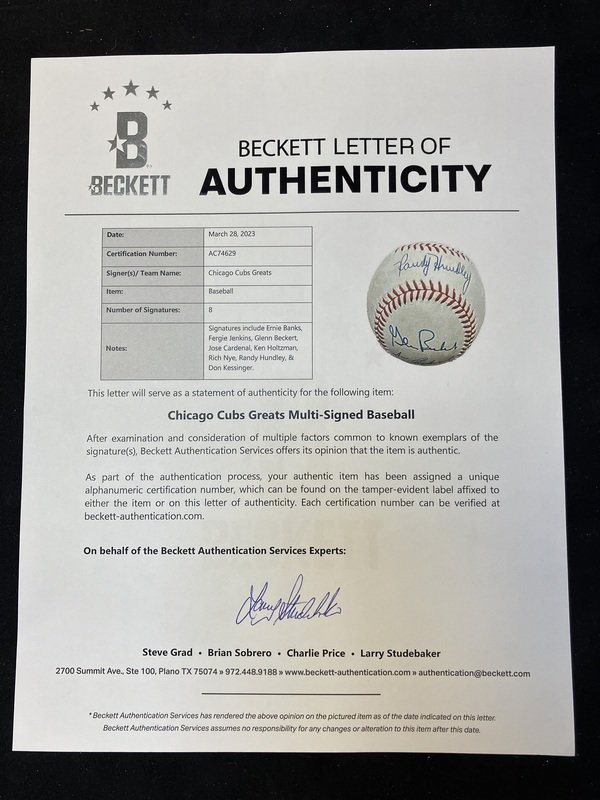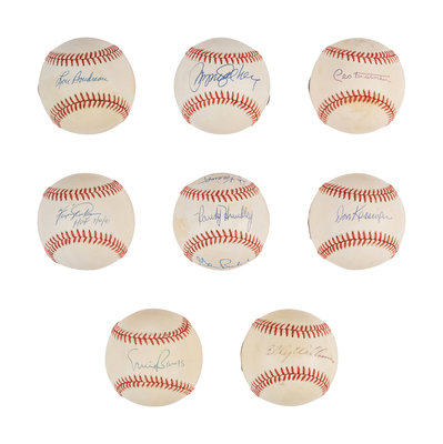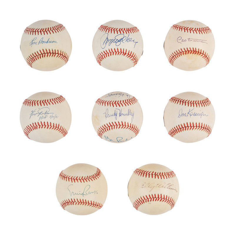 comprsing Ernie Banks; Fergie Jenkins; Leo Durocher; Ryne Sandberg; Billy Williams; Don Kessinger; Lou Boudreau; multi-signed ball featuring Ernie Banks, Fergie Jenkins, Glenn Beckert, Jose Cardenal, Ken Holtzman, Rich Nye, Randy Hundley, Don Kessinger.