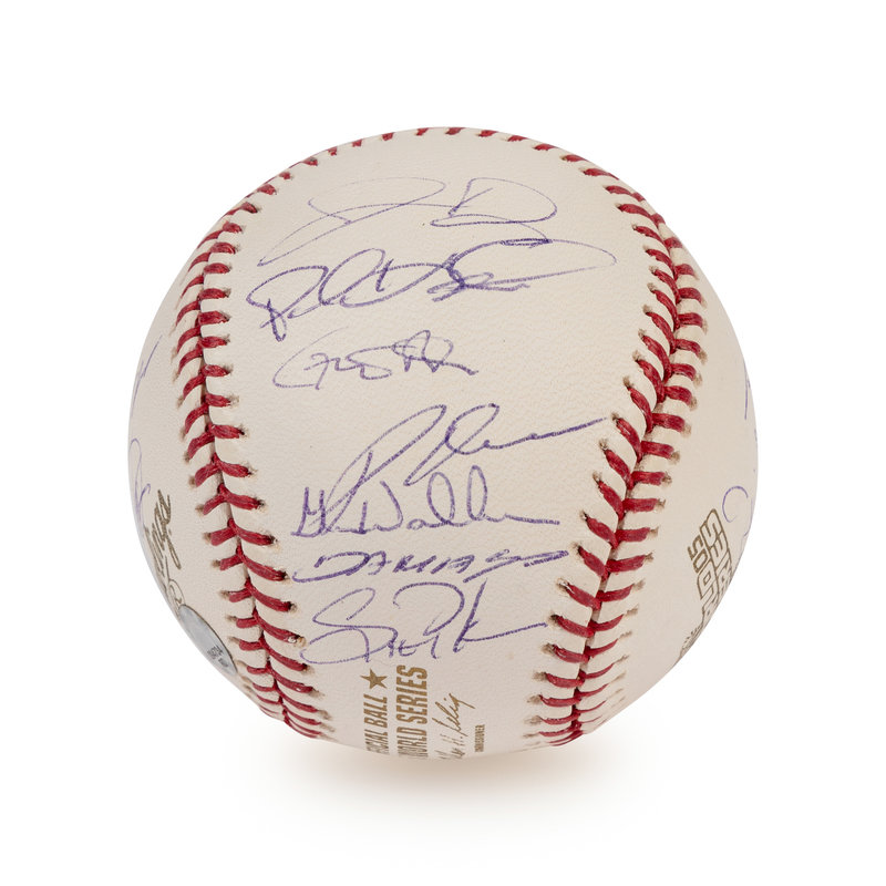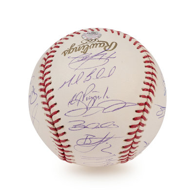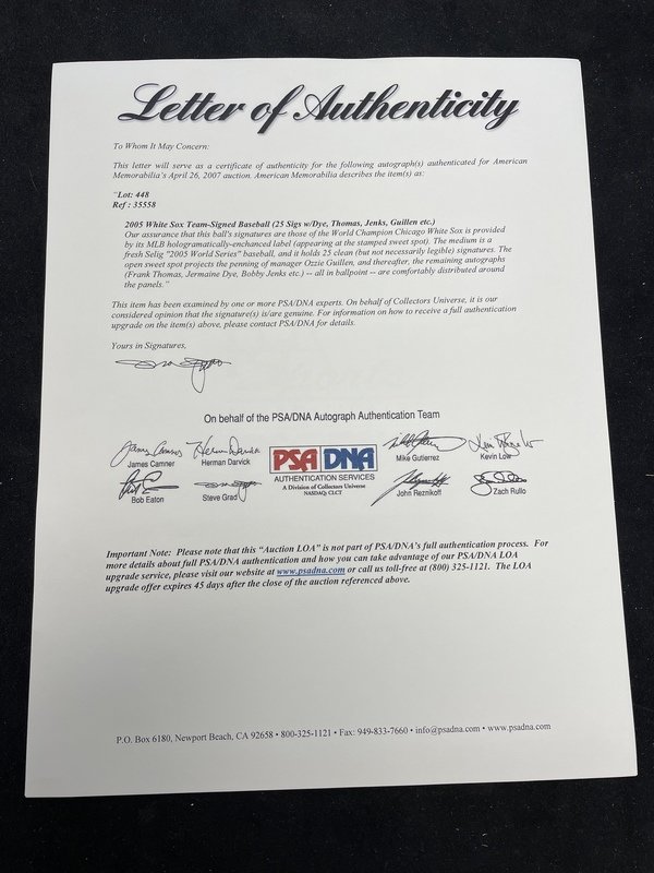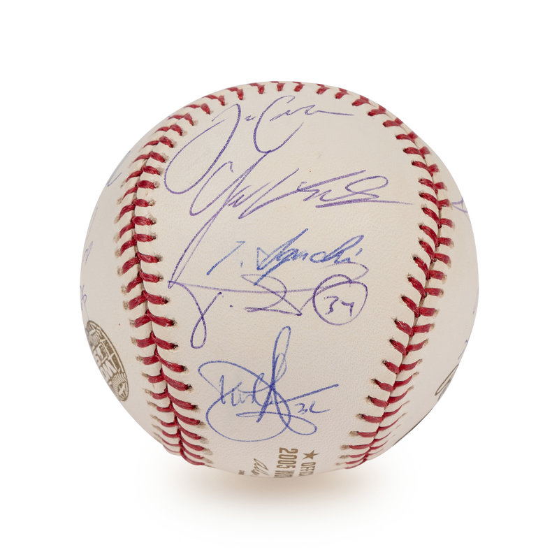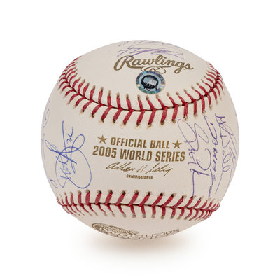 comprising 25 signatures on official 2005 World Series baseball including Ozzie Guillen, Frank Thomas, Jermaine Dye, Bobby Jenks, Paul Konerko.