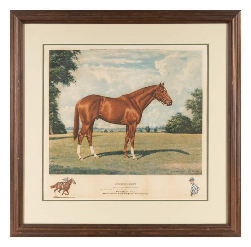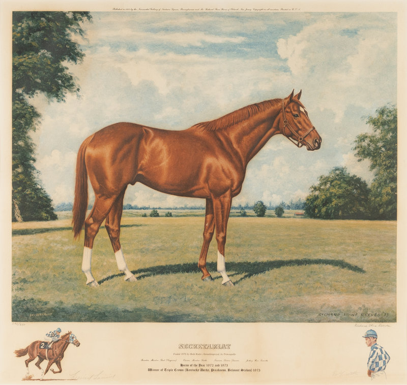 A Secretariat Limited Edition Richard Stone Reeves Print Signed by Trainer Lucien Laurin and Jockey Ron Turcotte,