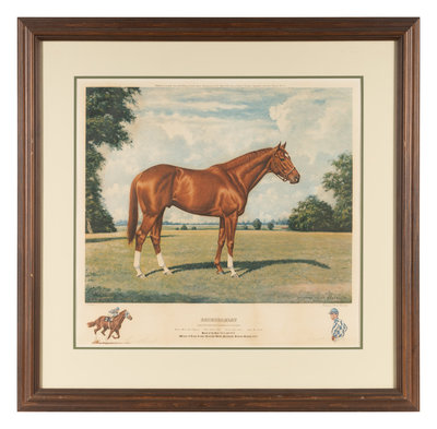 inscribed by the team behind horse racing's greatest champion, "Lucien Laurin" and "Ron Turcotte" in pencil. Numbered 595 of 850 and signed by artist in pencil.