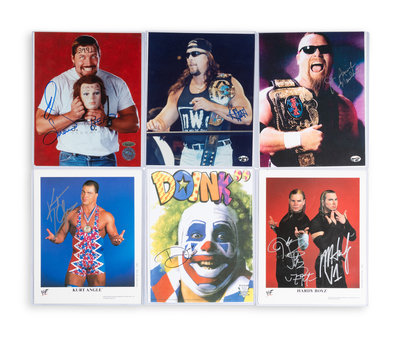 A Large Group of Professional Wrestling Signed Items Including Ric Flair and Multiple Deceased Wrestlers