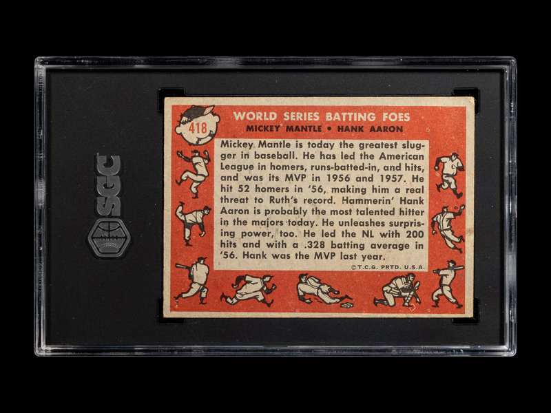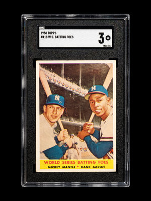 A 1958 Topps Mickey Mantle / Hank Aaron World Series Batting Foes Baseball Card No. 418 (SGC 3 VG)