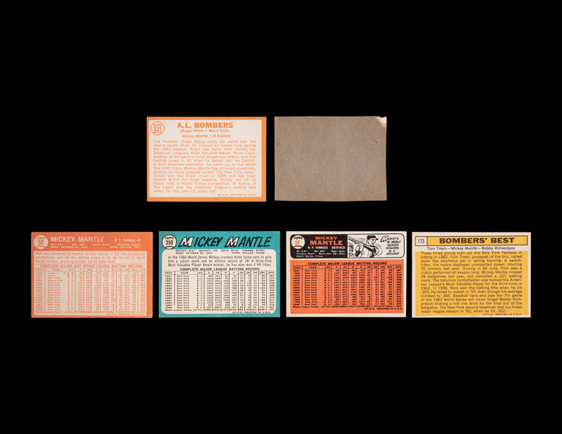 comprising 1962 Post Cereal; 1963 Topps card No. 173; 1964 Topps cards No. 50 and 331; 1965 Topps card No. 350; 1966 Topps card No. 50.