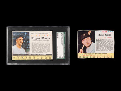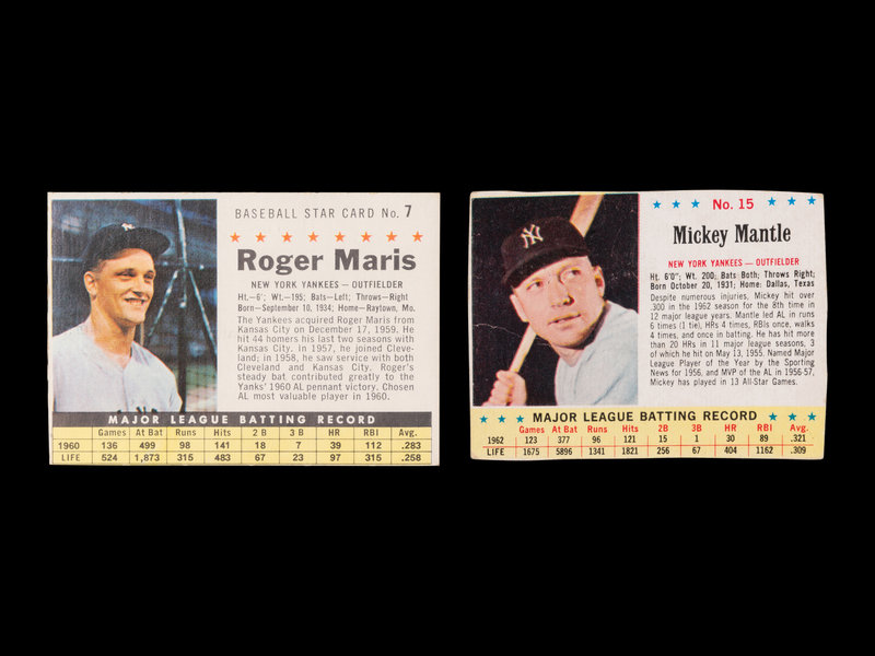 comprising of a 1961 Roger Maris No. 7 (SGC 5.5 EX+) and a 1963 Mickey Mantle No. 15.