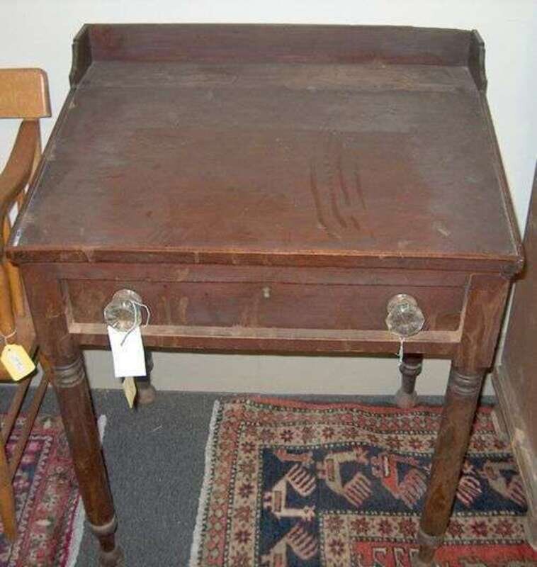 BROWN-STAINED PINE DESK