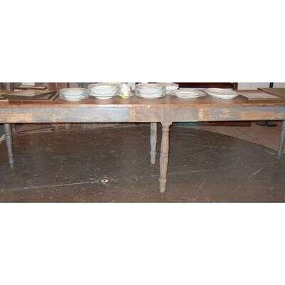 The rectangular pine top raised on baluster-turned legs. H: 30, L: 119, W: 31 in.